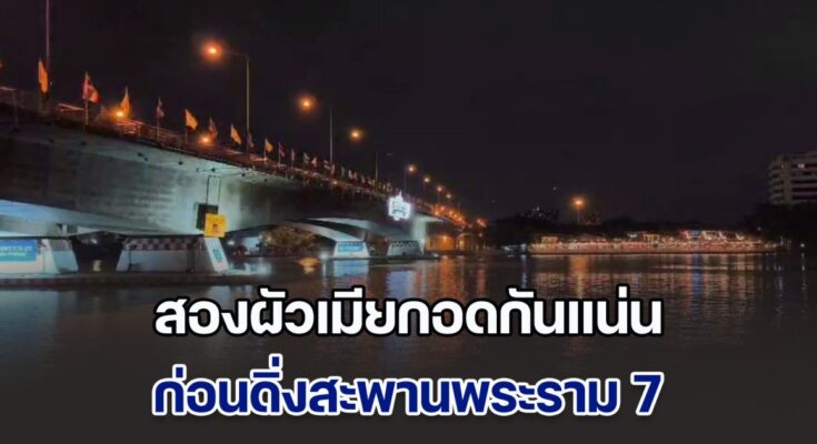 ที่เกิดเหตุบริเวณกลางสะพานพระราม 7 (ฝั่งบางกรวย) ต.บางกรวย อ.บางกรวย จ.นนทบุรี พบเจ้าหน้าที่กู้ภัยกำลังนำเรือท้องแบนลงสู่แม่น้ำเจ้าพระยา และนักประดาน้ำจำนวน 5 นาย ลงค้นหาร่าง 2 สามีภรรยา เบื้องต้นยังไม่ทราบข้อมูลที่แน่ชัด (ยังไม่ทราบชื่อ-นามสกุล) อยู่ระหว่างตรวจสอบ