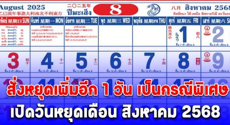 ประกาศแล้ว! ครม. สั่งหยุดเพิ่มอีก 1 วัน เป็นกรณีพิเศษ เปิดวันหยุดเดือน สิงหาคม 2568