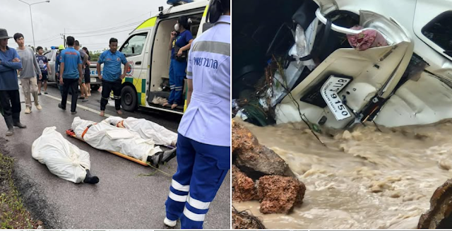 ในที่เกิดเหตุพบรถยนต์เก๋งสีขาว สภาพชนเสาไฟฟ้าจมอยู่ในน้ำข้างทางสภาพรถพังยับนอนตะแคง ภายในรถพบผู้เสียชีวิตจำนวน 3 ราย กู้ภัยได้นำร่างผู้เสียชีวิตออกมาจากซากได้สำเร็จ ส่วนรายละเอียดเพิ่มเติมอยู่ระหว่างการตรวจสอบ