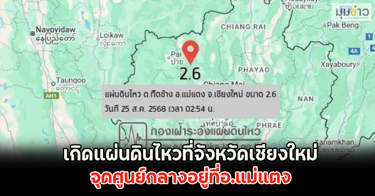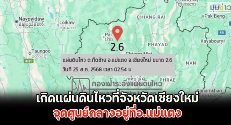 เกิดแผ่นดินไหวที่จังหวัดเชียงใหม่ จุดศูนย์กลางอยู่ที่อ.แม่แตง