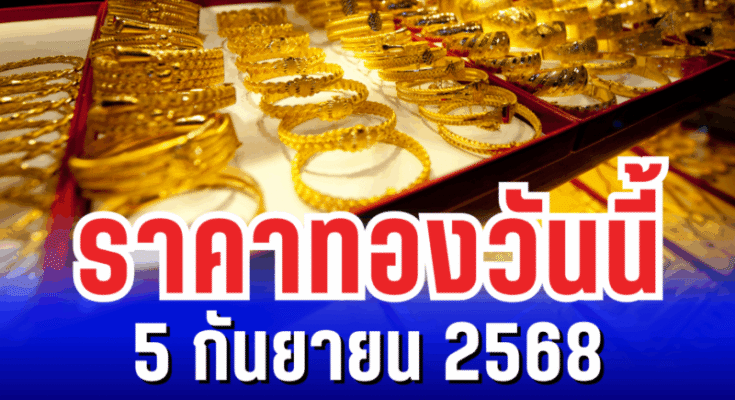 ราคาทองวันนี้ 5 กันยายน 2568 โดย สมาคมค้าทองคำ ประกาศราคาทองครั้งที่ 1 (เปิดตลาด) เมื่อเวลา 09.04 น. ปรับตัวขึ้น 50 บาท สู่บริเวณ 54,200 บาท เมื่อเทียบกับประกาศราคาซื้อขายครั้งสุดท้ายของเมื่อวาน (วันพฤหัสบดี) ที่ระหว่างวันมีการประกาศราคาทองคำทั้งหมด 16 ครั้ง รวมราคาปรับตัวขึ้นรวม 100 บาท