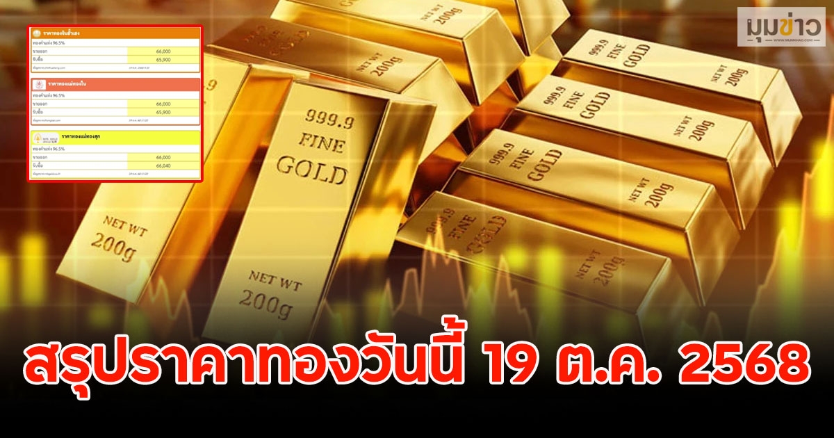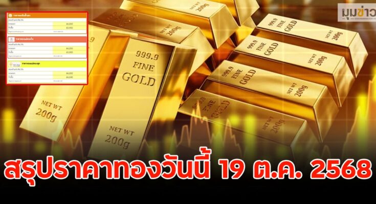 สรุปราคาทอง ประจำวันอาทิตย์ 19 ต.ค. 2568 ราคาทองคำแท่ง ราคาทองรูปพรรณ ในประเทศไทยวันนี้ สรุปแล้วราคาทองอยู่ที่บาทละเท่าไหร่