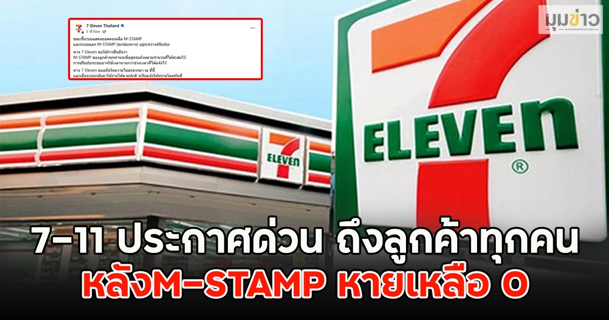 7-11 ประกาศด่วน ถึงลูกค้าทุกคน หลังM-STAMP หายเหลือ 0
