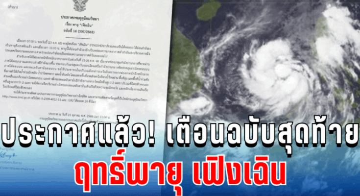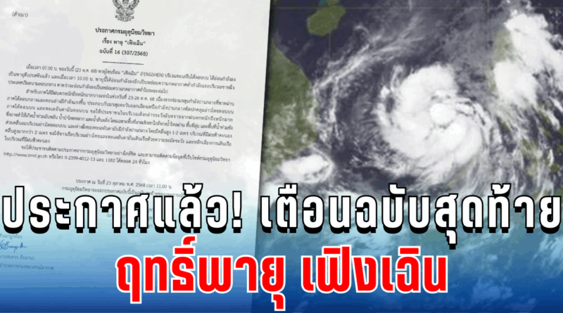 เมื่อวันที่ 23 ตุลาคม 2568 กรมอุตุนิยมวิทยา ได้ประประกาศ เรื่อง พายุ เฟิงเฉิน ฉบับที่ 16 (307/2568) เป็นฉบับสุดท้ายของเหตุการณ์นี้ เมื่อเวลา 07.00 น. ของวันนี้ (23 ต.ค. 68) พายุโซนร้อน เฟิงเฉิน (FENGSHEN)