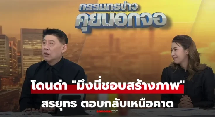 ในรายการ “กรรมกรข่าว คุยนอกจอ” ประจำวันที่ 27 พฤศจิกายน 2568 ขณะที่ สรยุทธ สุทัศนะจินดา และ เฟิร์น สุชาดา นิ่มนวล กำลังรายงานสถานการณ์น้ำท่วมใหญ่ในพื้นที่หาดใหญ่ จังหวัดสงขลา และหลายจังหวัดในภาคใต้ สรยุทธได้หยิบแท็บเล็ตขึ้นมาอ่านคอมเมนต์จากทางบ้าน ซึ่งมีข้อความหนึ่งระบุว่า “เมืองนี้ชอบสร้างภาพจริงๆ นะ” ทันทีที่อ่านจบ สรยุทธได้ชี้แจงว่า ตนเองนั่งอยู่ที่นี่ (สตูดิโอ) แท้ๆ ไม่ได้ลงไปในพื้นที่จริง ยังโดนกล่าวหาว่าสร้างภาพ ถ้าลงไปจริงๆ จะขนาดไหน พร้อมบอกทีมงานทีเล่นทีจริงว่า “ทีมงาน เตะออกไป”