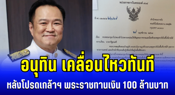 อนุทิน เคลื่อนไหวทันที หลัง ในหลวงโปรดเกล้าฯ พระราชทานเงิน 100 ล้านบาท