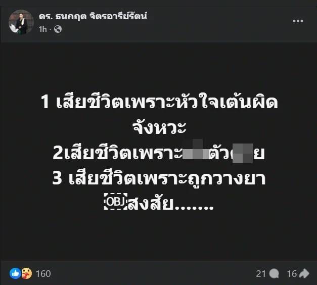 ล่าสุด นายกองตรี ดร.ธนกฤต จิตรอารีย์รัตน์ ได้ออกมาโพสต์ข้อสงสัย ถึงเรื่องราวดังกล่าว โดยระบุผ่านเฟซบุ๊ก ดร.ธนกฤต จิตรอารีย์รัตน์ ว่า