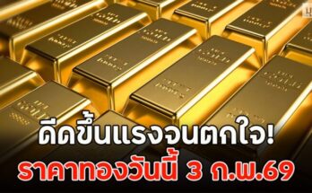 ราคาทองบ่ายวันนี้ 16/12/68 ช่วงเช้าเปิดตลาดปรับตัวลดลง 300 บาท ระหว่างวันยังคงปรับตัวอีกหลายครั้ง ล่าสุดปรับลดอีก ครั้งที่ 13