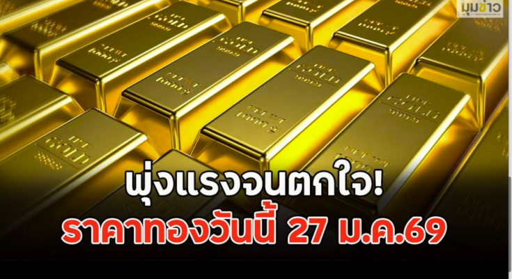 ราคาทองคำประจำวันที่ 27 ม.ค.2569 เปรียบเทียบกับราคาสุดท้ายของเมื่อวานนี้ โดยราคาทองรูปพรรณขยับมาอยู่ที่บาทละ 75,600 บาท อ้างอิงข้อมูลล่าสุดจาก สมาคมค้าทองคำ ที่เผยแพร่ผ่านทางเว็บไซต์ เมื่อเวลา 09.39 น.ที่ผ่านมา