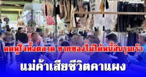 ที่เกิดเหตุพบพ่อค้าแม่ค้าและประชาชนที่มาจับจ่ายซื้อของอยู่ในอาการตกใจ บริเวณแผงขายชุดชั้นในและเสื้อผ้าสตรี พบร่างหญิง อายุ 55 ปี เจ้าของแผง นั่งเสียชีวิตอยู่กับพื้นภายในร้าน มีเศษผ้าถูกอยู่บริเวณลำคอใกล้กันพบขวดสุราที่ถูกเปิดดื่มแล้ว เบื้องต้นคาดว่าเสียชีวิตมาแล้วประมาณ 2 ชั่วโมง