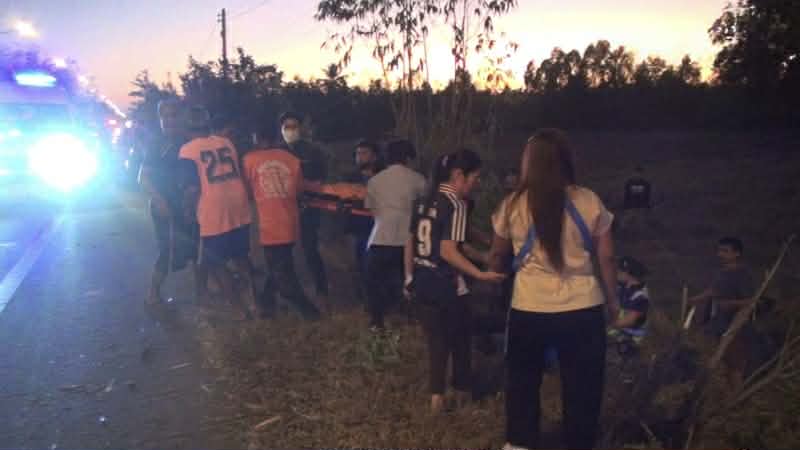 ที่เกิดเหตุ พบรถยนต์กระบะยี่ห้อโตโยต้า รุ่นวีโก้ คันหมายเลขทะเบียน นข-3459 ยโสธร พลิกคว่ำหงายท้องล้อชี้ฟ้าตกลงไปในทุ่งนาซึ่งมีไหล่ทางสูงเกือบ 2 เมตร และมีเด็กนักเรียน ซึ่งส่วนใหญ่เป็นนักเรียนในระดับประถมศึกษา กระเด็นออกจากตัวรถไปคนละทิศละทางได้รับบาดเจ็บ นอนร้องครวญครางรอการช่วยเหลือ ทั้งหมด จำนวน 17 คน