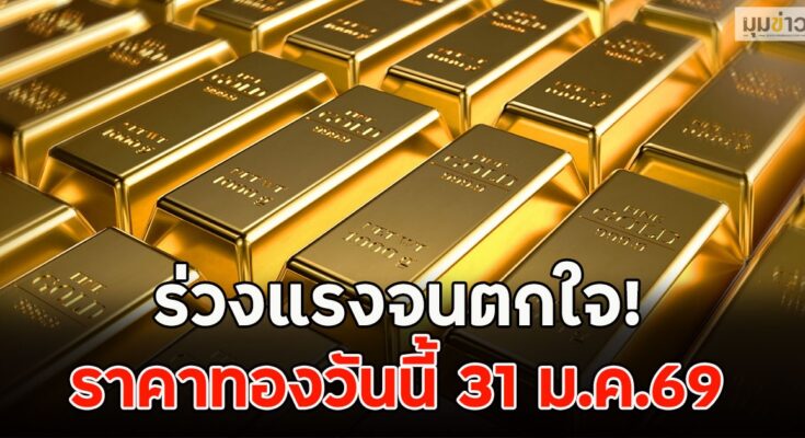 ราคาทองคำประจำวันที่ 31 ม.ค.2569 ประกาศครั้งแรก ร่วงแรง 1,000 บาท เปรียบเทียบกับราคาสุดท้ายของเมื่อวานนี้ โดยราคาทองรูปพรรณขยับมาอยู่ที่บาทละ 75,000 บาท อ้างอิงข้อมูลล่าสุดจาก สมาคมค้าทองคำ ที่เผยแพร่ผ่านทางเว็บไซต์ เมื่อเวลา 09.23 น.ที่ผ่านมา