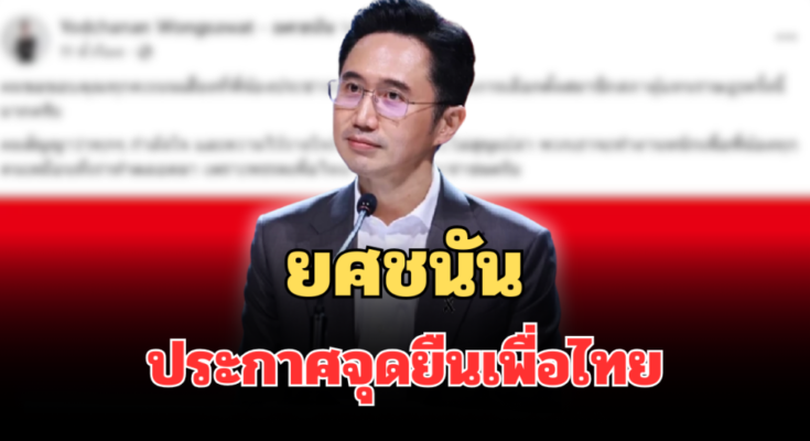 ชัดเจน! ยศชนัน ประกาศจุดยืนเพื่อไทย หลังรู้ผลคะแนนเลือกตั้ง