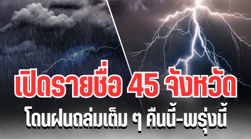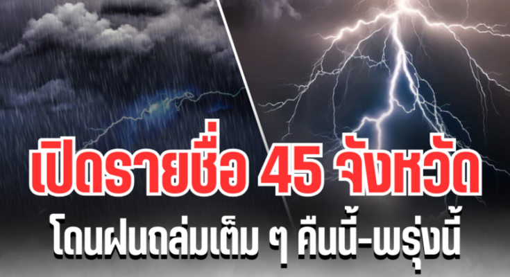 ประกาศเเล้ว! กรมอุตุฯ เปิดรายชื่อ 45 จังหวัด โดนฝนถล่มเต็ม ๆ คืนนี้-พรุ่งนี้
