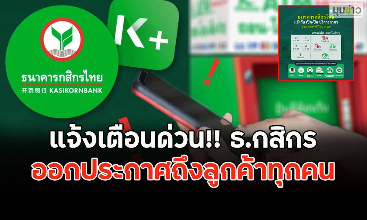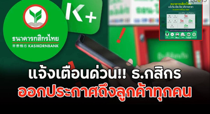 แจ้งเตือน!! ธ.กสิกร ประกาศถึงลูกค้าทุกคน