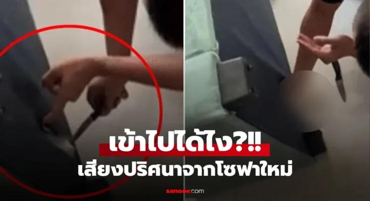 ด้วยความสงสัยและอยากรู้ให้กระจ่าง เจ้าของบ้านจึงตัดสินใจพลิกฐานโซฟาขึ้นมา ก่อนจะใช้มีดกรีดช่องสี่เหลี่ยมเพื่อสำรวจภายในทันที