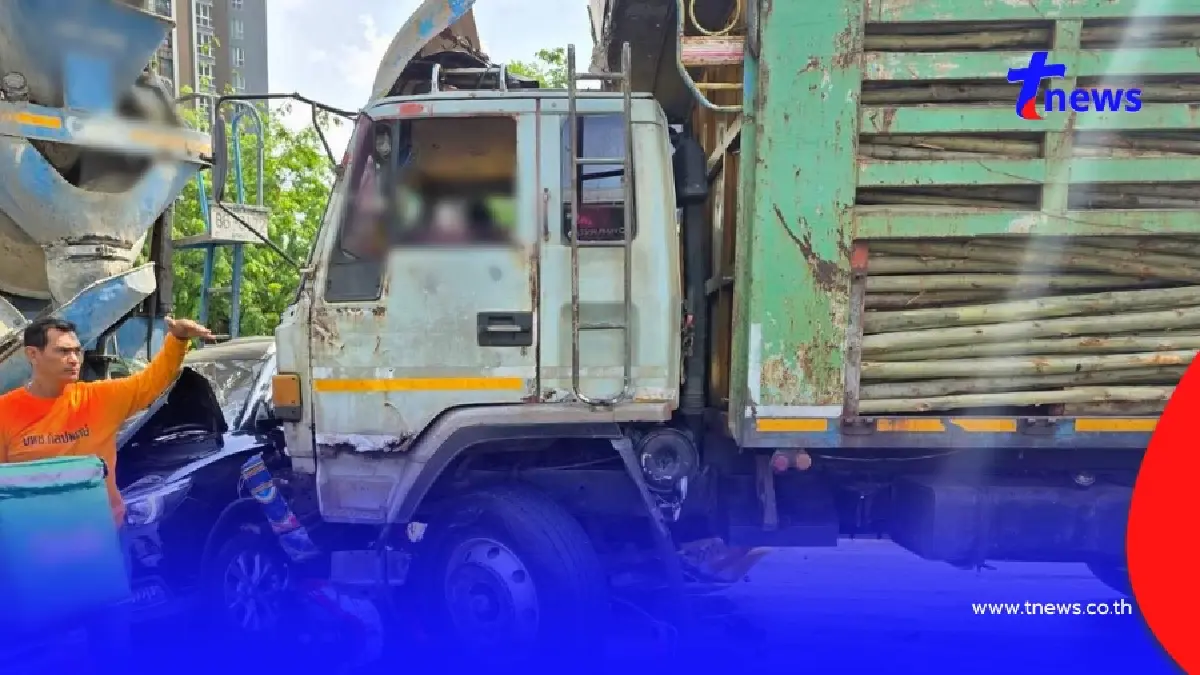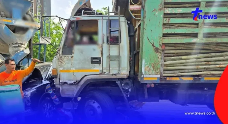 โดยมีผู้ขับขี่ติดอยู่ใต้ท้องรถ2คน ทราบชื่อ นายจารุวัตร อ่ำชัยภูมิ อายุ 50 ปี วินจยย.รับจ้าง และชายไทย ไม่ทราบชื่ออีก1คน ด้านหน้ารถสิบล้อชนเข้ากับร่างของนายทศพล ฤกษ์เฉลิมพจน์ อายุ55 ปี เข้ากับประตูข้องซ้ายของรถเก๋ง เอ็มจี สีดำ ทะเบียนกรุงเทพมหานคร จนเสียชีวิตคาที่ ส่วนด้านขวาของรถเอ็มจีอัดก็อปปี้กับท้ายรถสิบล้อโม่ปูน