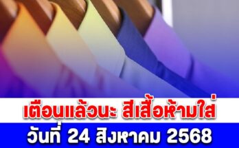 เตือนแล้วนะ สีเสื้อห้ามใส่ วันที่ 24 สิงหาคม 2568 (ความเชื่อส่วนบุคคล) Read More